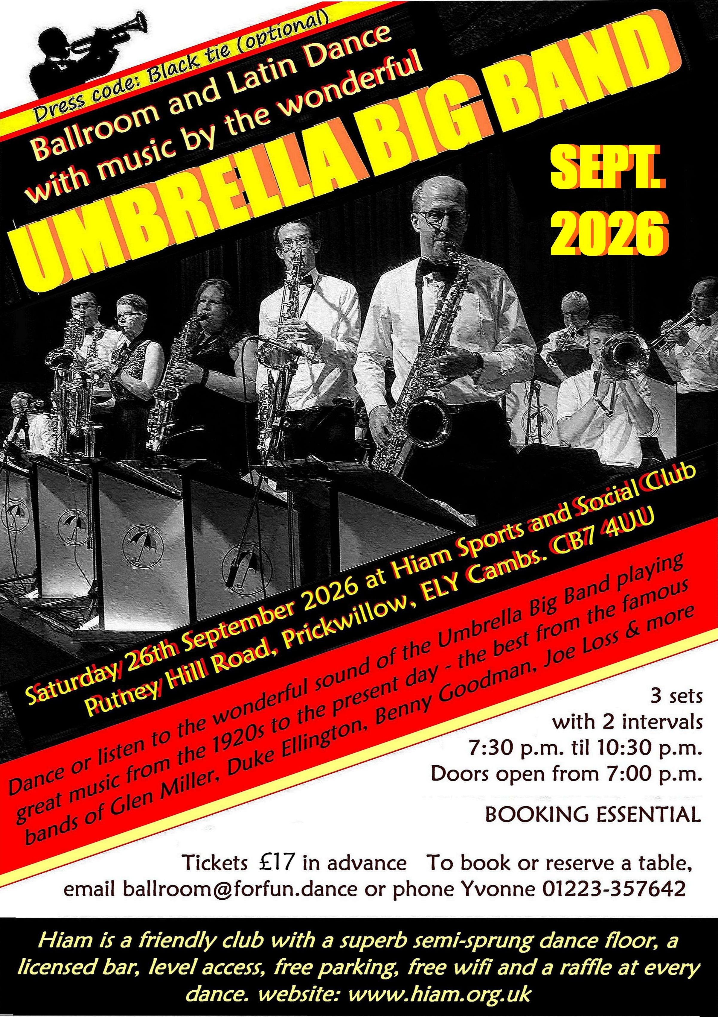 2026 AUGUST Sunday 2nd Tea: David Last Saturday 15th: Chris Powell Saturday 22nd: Annie SEPTEMBER Sunday 6th Tea: Nick Martin Sunday 20th Tea: Mark Spafford Saturday 26th Umbrella Big Band* £17. Booking opens July 2026 To book email ballroom@forfun.dance or phone 01223 357642. (see poster) OCTOBER Sunday 4th Tea: David Last Saturday 17th: Stuart Burr Saturday 24th: Paul Hadley NOVEMBER Sunday 1st Tea: Mark Spafford Saturday 21st: David Last Sunday 29th Tea: Gary Cole DECEMBER Sunday 6th Tea: David Last Saturday 19th: Chris Johnson Thursday 31st NYE: David Ingley |